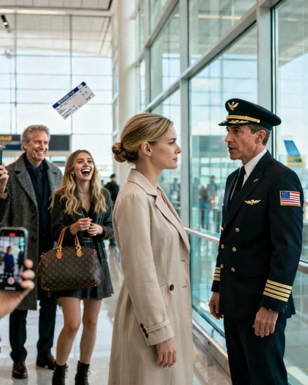 Moja siostra – Leia – dosłownie szarpnęła swoją designerską torebkę, palce zsunęły się z paska, jakby jej ciało zapomniało, jak nadążyć za jej twarzą. Jej karta pokładowa opadła, a mały biały papierek powiewał niczym flaga kapitulacji.