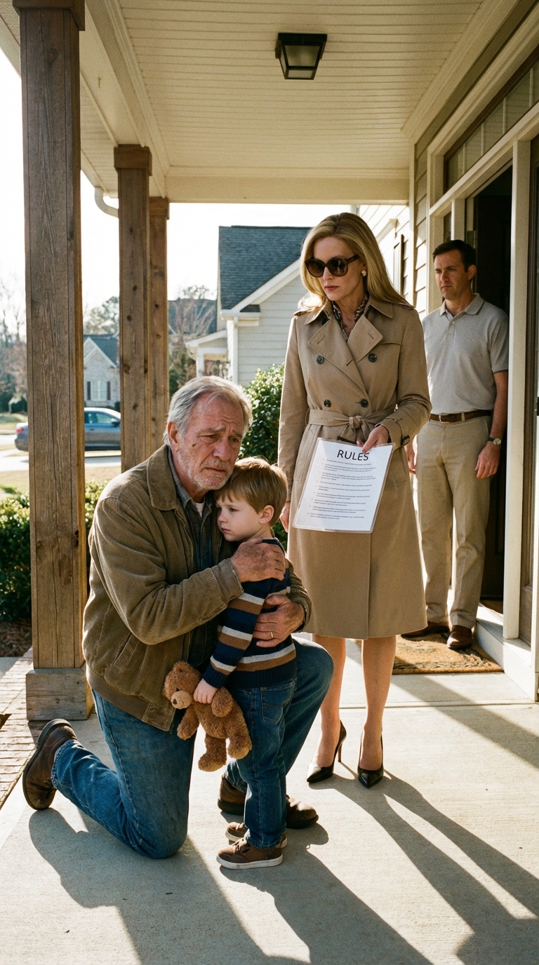 Przesunęła dokument po nieskazitelnie czystej, kwarcowej wyspie za pierwszym razem, gdy próbowałem trzymać własnego wnuka.